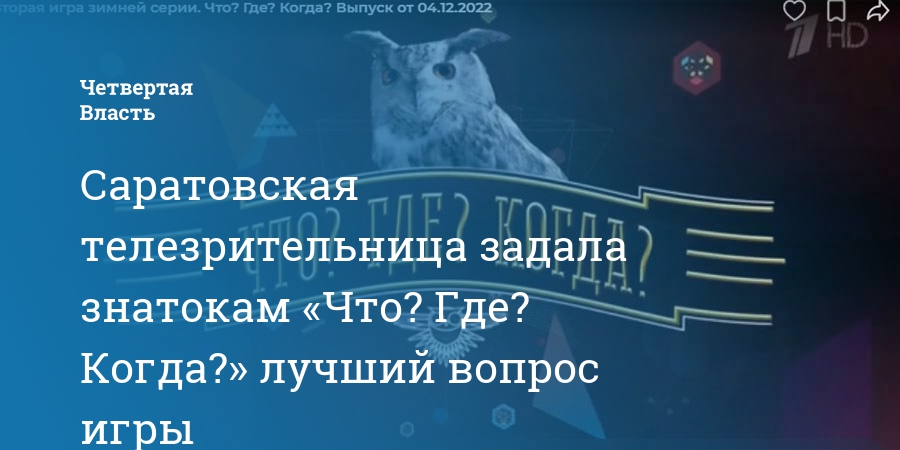 Саратовская телезрительница задала знатокам «Что? Где? Когда?» лучший вопрос игры