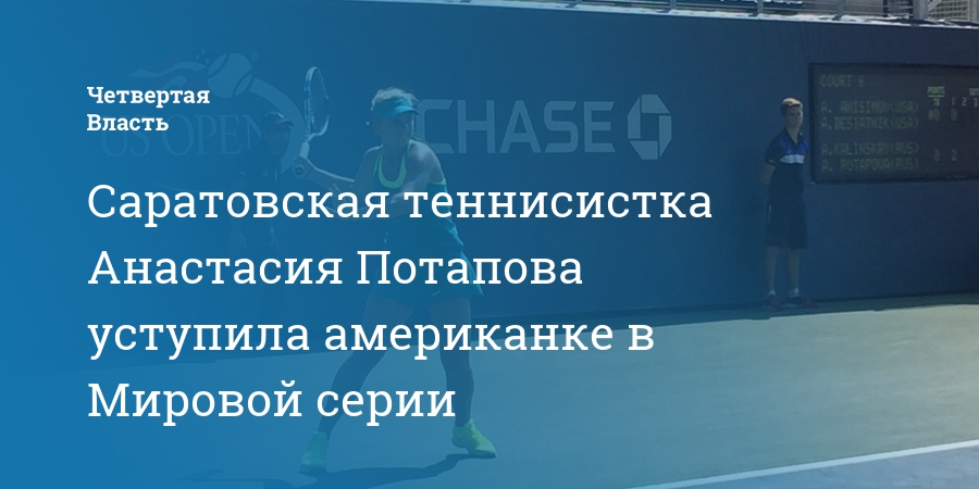 Теннисистка из Саратова Анастасия Потапова на турнире Мировой серии в Сан-Диего (США) уступила Софии Кенин (США). Во второй партии наша землячка не удержала преимущество в два гейма.