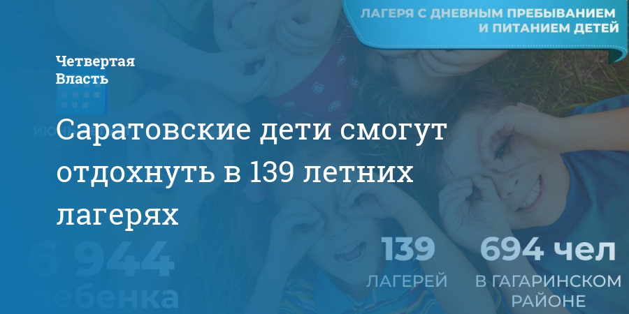 В Саратове в летние каникулы будут работать 139 лагерей с дневным пребываем и организацией питания. Об этом сообщили в пресс-службе городской администрации.