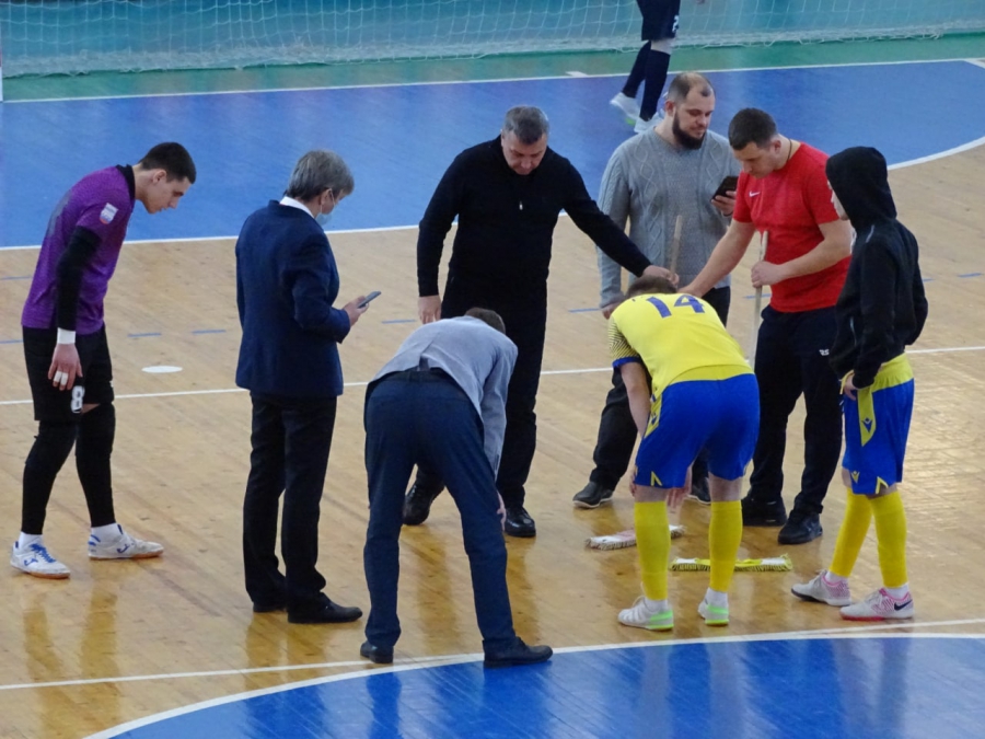 На третьей минуте второго тайма игра была остановлена почти на час. На площадке появилось несколько скоплений воды, которая текла с крыши, ее потребовалось убрать и устранить источник течей. Работники зала и клуба с задачей справились, и через три минуты после возобновления игры Виктор Сосковец сравнял счет. Иван Андреев тут же вернул лидерство хозяевам, на 47-й минуте Алексей Саблин закрепил победу - 4:2.