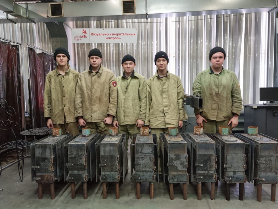 Так, студенты автомобильно-электромеханического техникума, обучающиеся по специальности сварщик, на благотворительной основе под руководством наставников изготавливают отопительные печи-буржуйки для участников СВО. Вскоре их переправят на фронт.