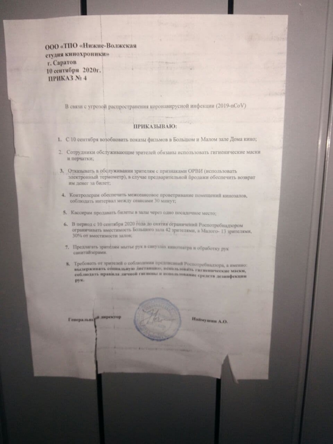 Областной музей краеведения сегодня оказался закрыт, но на его двери вывесили плакат с предупреждением о необходимости QR-кода для граждан. Аналогично были заперты двери и саратовского цирка, но подобных предупреждений на них не вывешивали.