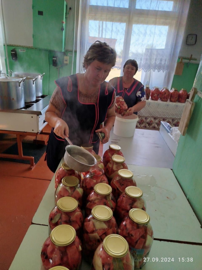 Арбузы солили работники школы поселка Алгайский, в том числе учителя. Военнослужащим отправили 150 банок.