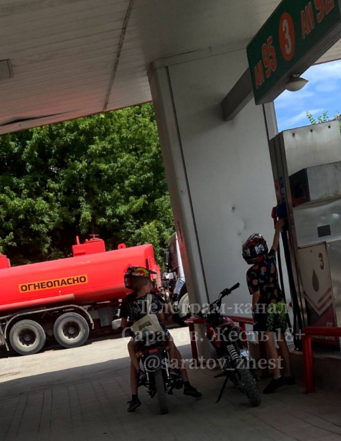 Саратовских детей на питбайках увидели на АЗС. Полиция начала проверку