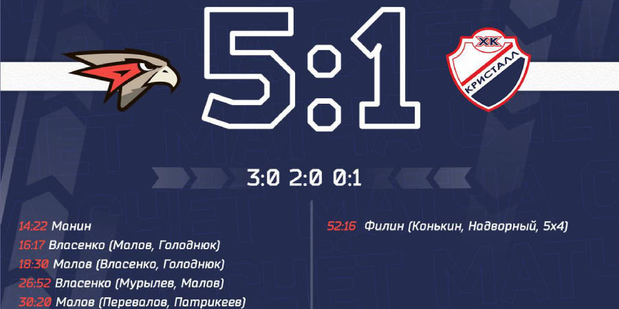 Сразу после трех пропущенных шайб (Егор Манин - 15-я минута, Дмитрий Власенко - 17-я, Вячеслав Малов - 19-я) тренерский штаб саратовцев не стал менять вратаря. Однако на второй период Андрей Грищенко не вышел. Сменивший его Егор Корзин впервые пропустил на 26-й минуте от Власенко, котом нашего голкипера пробил Малов (31-я).
