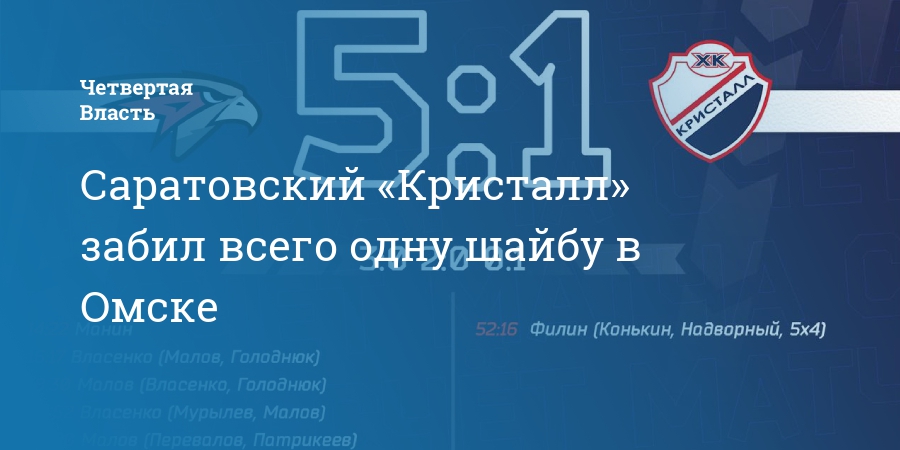 Хоккеисты саратовского «Кристалла» в гостях уступили «Омским Крыльям» (Омск). Единственный гол саратовцы забили при счете 5:0.