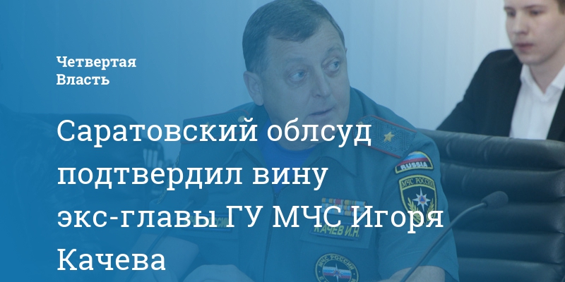 Саратовский областной суд оставил без изменений приговор экс-главе ГУ МЧС Игорю Качеву, признанному виновным в превышении должностных полномочий. Об этом «Четвертой Власти» сообщили в пресс-службе инстанции.