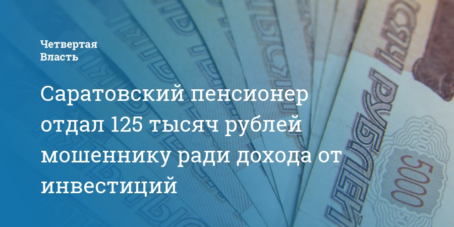 Саратовский пенсионер отдал 125 тысяч рублей мошеннику ради дохода от инвестиций