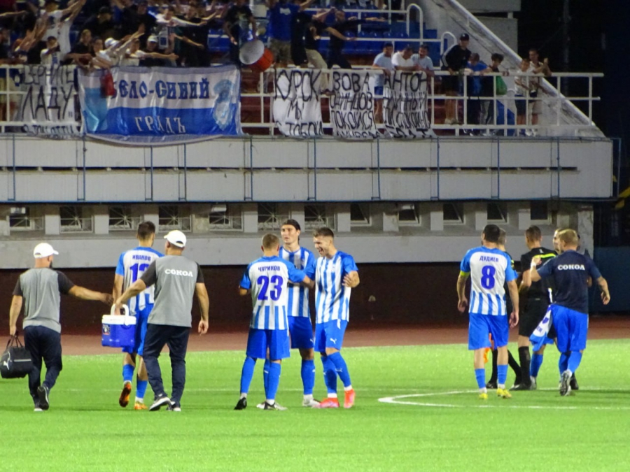 Ответный мяч «Сокол» забил усилиями четверки футболистов, вышедших на замену. Голевой удар в дальний верхний угол ворот нанес в самом конце 90-й минуты Иван Чуриков. Ничья 1:1 довела беспроигрышную серию «Сокола» до пяти матчей.