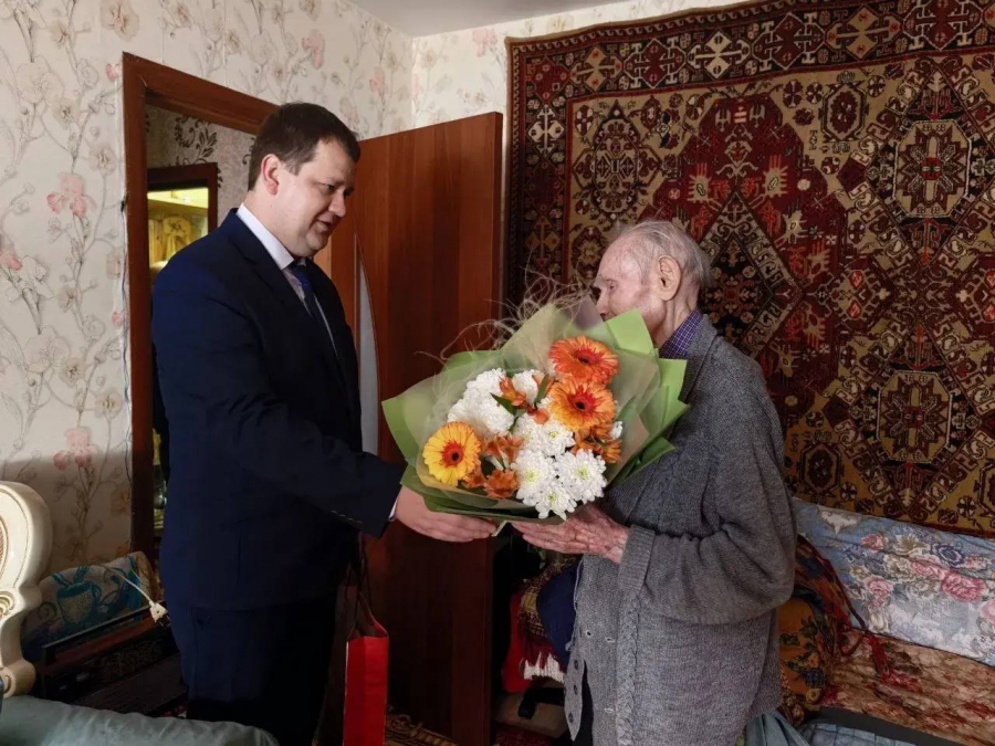 Артем Курочкин лично приехал поздравить именинника, вручил ему букет цветов, а также пожелал крепкого здоровья, бодрости духа и тепла близких людей.