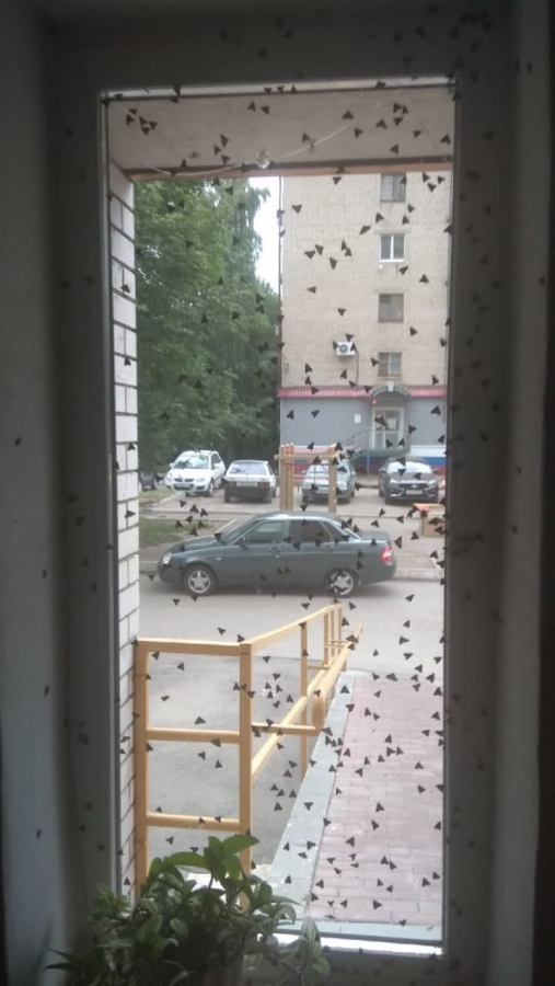 Насекомые залетают на свет в квартиры и подъезды. Местами они буквально заполоняют собой жилые пространства саратовцев. Также скопления мотыльков встречаются на улицах.