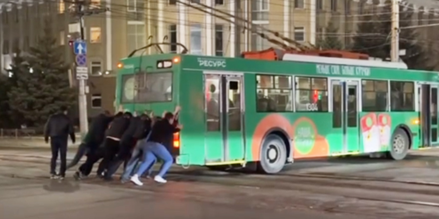 СГЭТ: Горожане сами проявили инициативу в толкании застрявшего троллейбуса у СГУ