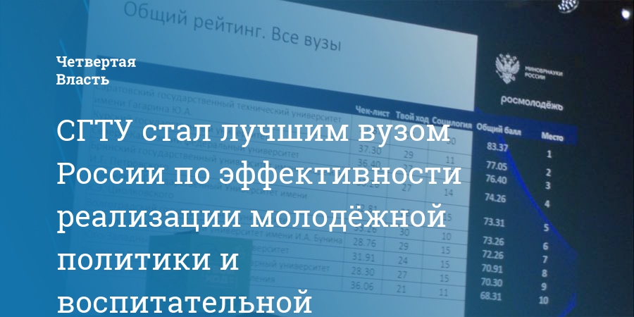 СГТУ стал лучшим вузом России по эффективности реализации молодёжной политики и воспитательной деятельности