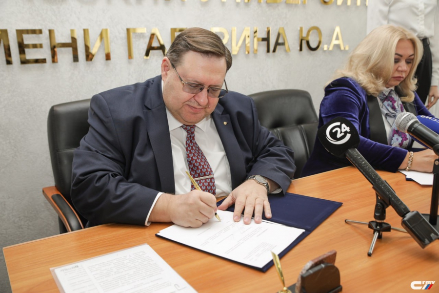Свои подписи под документом поставили ректор СГТУ, профессор Сергей Наумов и гендиректор Управляющей компании научно-образовательного центра мирового уровня «Инженерия будущего» - АНО «Институт регионального развития» (г.Самара) Ольга Михеева.