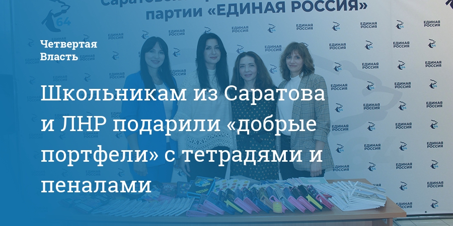 Школьникам из Саратовской области и Луганской Народной Республики, которые прошивают в нашем регионе, вручили «добрые портфели». Такие подарки накануне 1 сентября в рамках акции «Собери ребенка в школу» сделали руководитель регионального отделения Союза женщин России, депутат областной думы Юлия Литневская и врио руководителя Саратовстата Ольга Мальцева.
