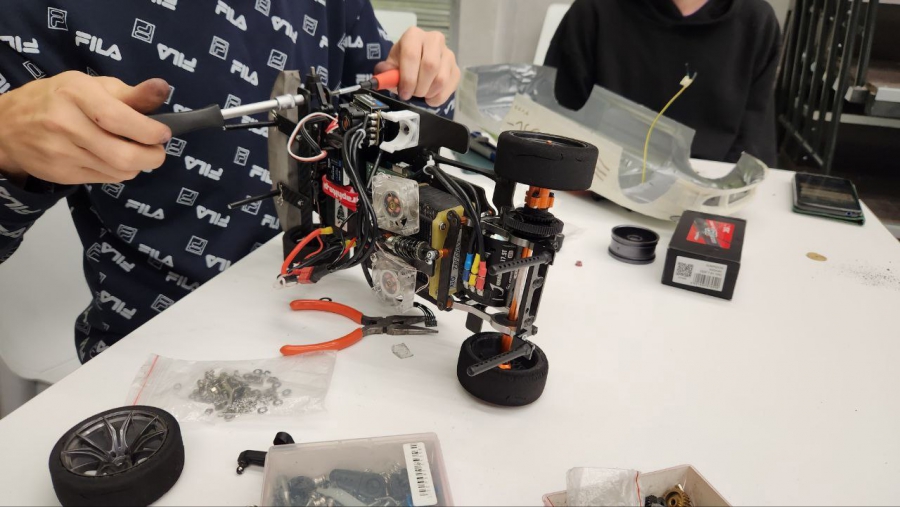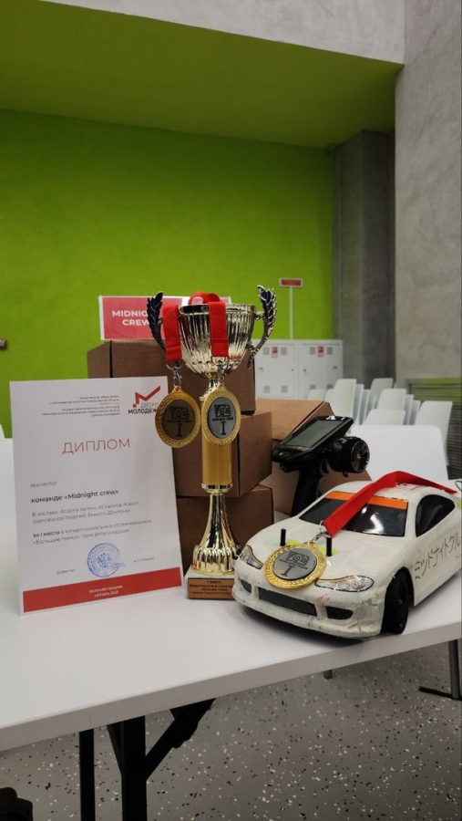 Первый этап – презентационная защита сконструированной модели и квалификационные заезды, по итогам которых ребята стартовали с первой позиции. А в основном втором этапе прошла гонка на скорость, которая длилась 3 часа. За это время ребята сразились с 11 командами и сделали максимальное количество кругов.
