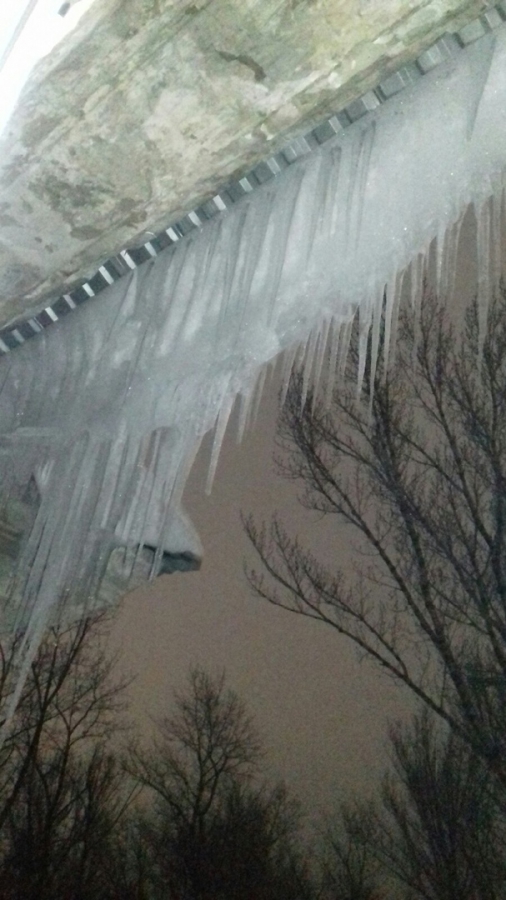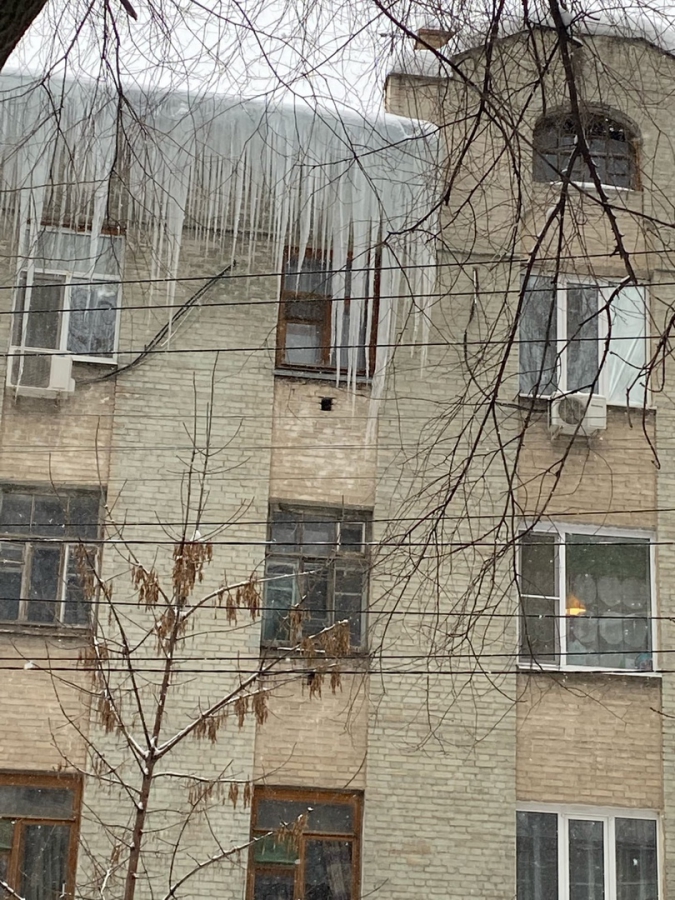 Возмущены и жители дома №32 по Крымской. По их словам, сосульки здесь висят ростом с человека, так что выходить на улицу страшно.