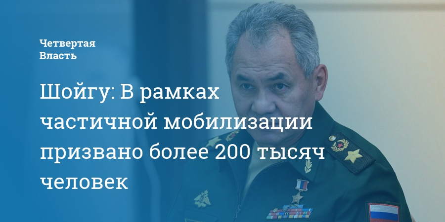 Шойгу: В рамках частичной мобилизации призвано более 200 тысяч человек