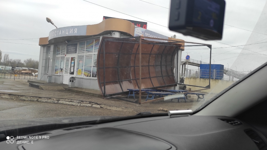 В Заводском районе у строения 3, дома № 80 по Новоастраханскому шоссе (вблизи ТЦ «Сити Молл») ветер вырвал из земли остановку, она лежит на асфальте. Там же шторм выдернул с корнем дерево, которое упало на здание автомойки.