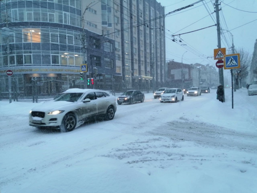 Сильный снегопад погрузил Саратов в 10-балльные пробки