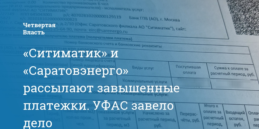 «Ситиматик» и «Саратовэнерго» рассылают завышенные платежки. УФАС завело дело