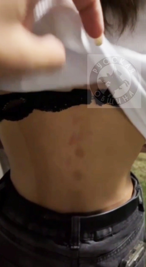 Потерпевшая зафиксировала побои на видео: сразу после нападения у нее на щеке проявилась большая синяя гематома, опухла область под глазом. Кроме того, была содрана кожа в районе позвоночника, а на локтях остались ссадины. Девочка отметила, что скоро у нее выпускной из школы, вероятно, ей придется идти на праздник с ранами. Пока она находится в лечебном учреждении в состоянии средней степени тяжести.