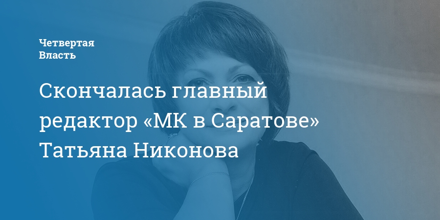 Сегодня, 11 марта, в Саратове на 58-м году жизни скончалась главный редактор и издатель газеты «МК в Саратове», экс-депутат городской думы Татьяна Никонова. Причина кончины – последствия ковида.