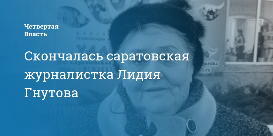 Ушла из жизни саратовская журналистка Лидия Гнутова. Об этом сообщила председатель регионального отделения Союза журналистов России Лидия Златогорская.