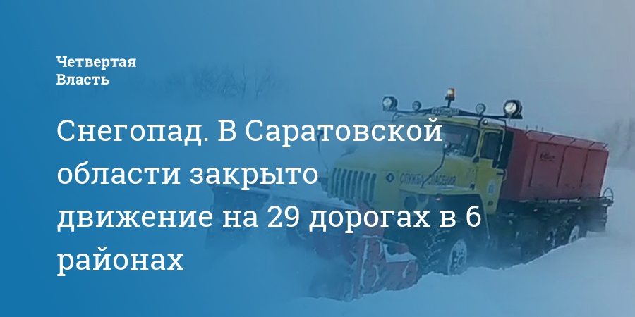 Снегопад. В Саратовской области закрыто движение на 29 дорогах в 6 районах