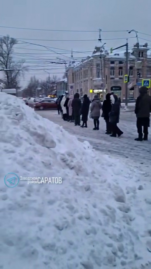 «Снежные пробки» в Саратове привели к дракам на остановках и огромным очередям