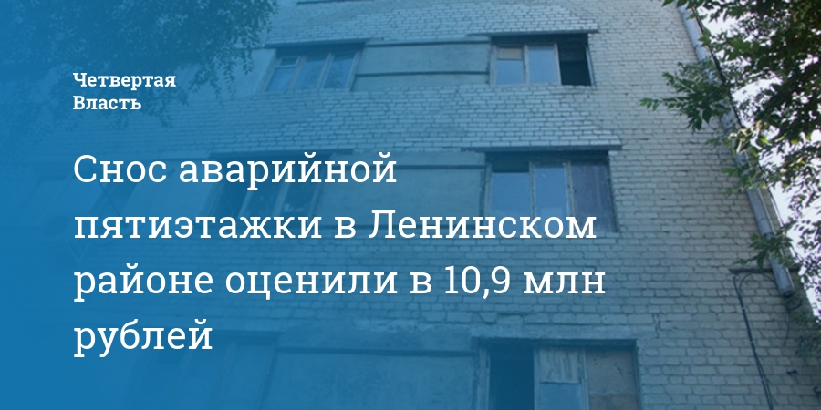 Снос аварийной пятиэтажки в Ленинском районе оценили в 10,9 млн рублей