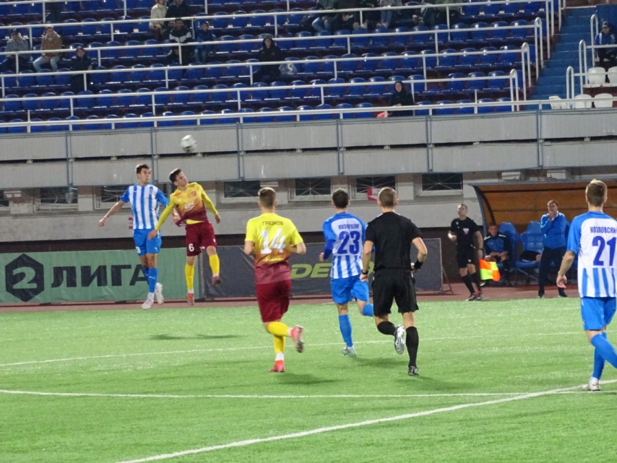 Гости выбили соперника из колеи двумя достаточно быстро забитыми мячами. Константин Белов на 16-й минуте метко пробил издали, Егор Лысов на 18-й забил из пределов штрафной. «Сокол» первый реальный момент создал на 44-й минуте, заработав угловой – после его подачи Никита Котин сократил отставание.