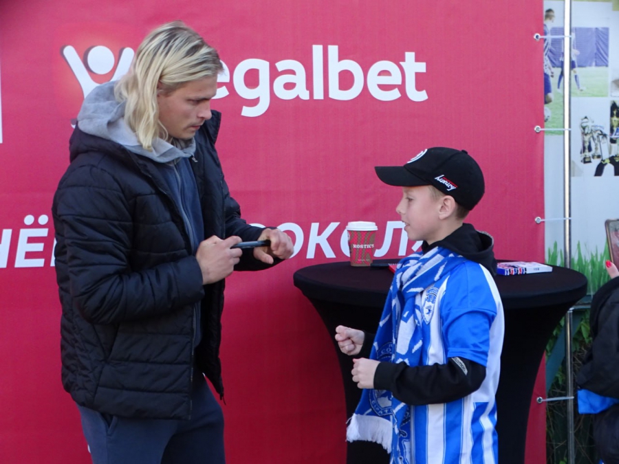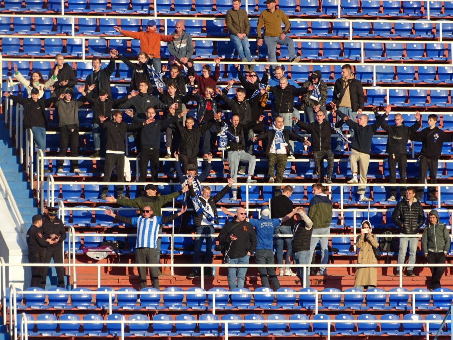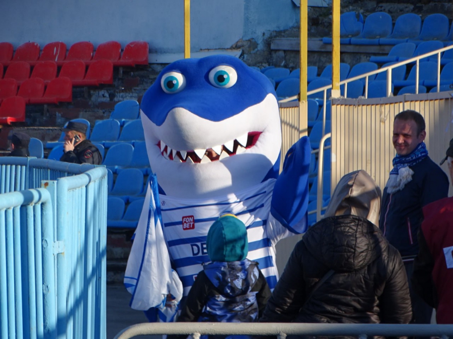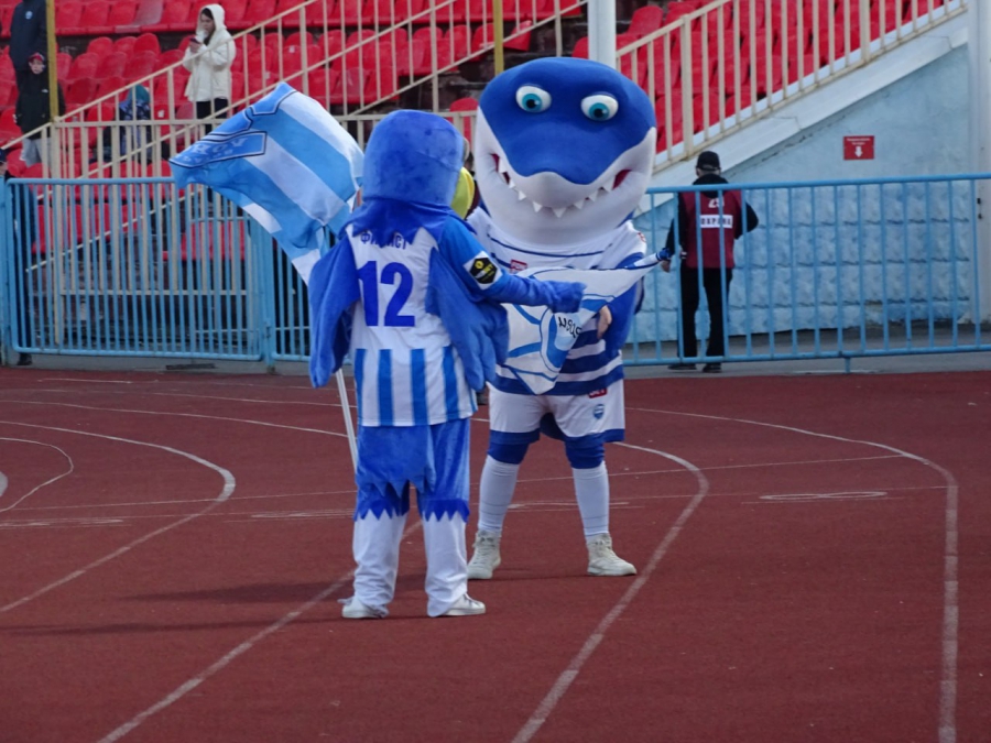 Футболисты «Сокола» сыграли вничью домашний матч с «Черноморцем» (Новороссийск). Гостей поддерживали болельщики во главе с маскотом-акулой Катраном.