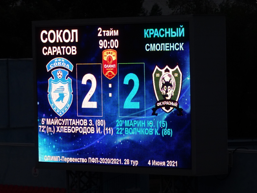 Спастись от поражения нашей команде помогла замена. Едва выйдя на поле, Игорь Бугаенко нанес опасный удар, вскоре он заработал пенальти. Иван Хлебородов с 11-метровой отметки пробил без шансов для вратаря. Итог - ничья 2:2, саратовцы впервые с 11 апреля пропустили дома.