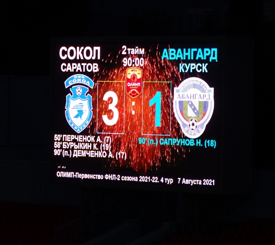 Футболисты саратовского «Сокола» дома победили «Авангард» (Курск) - 3:1.