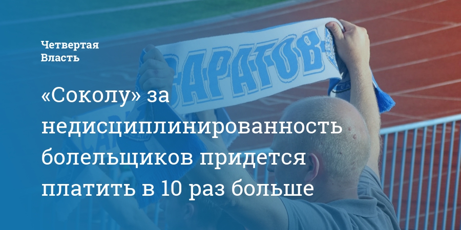 Саратовский футбольный клуб «Сокол» сообщил об увеличении размера штрафов за недисциплинированное поведение болельщиков. Клуб напомнил, что штрафы выплачиваются из казны клуба.