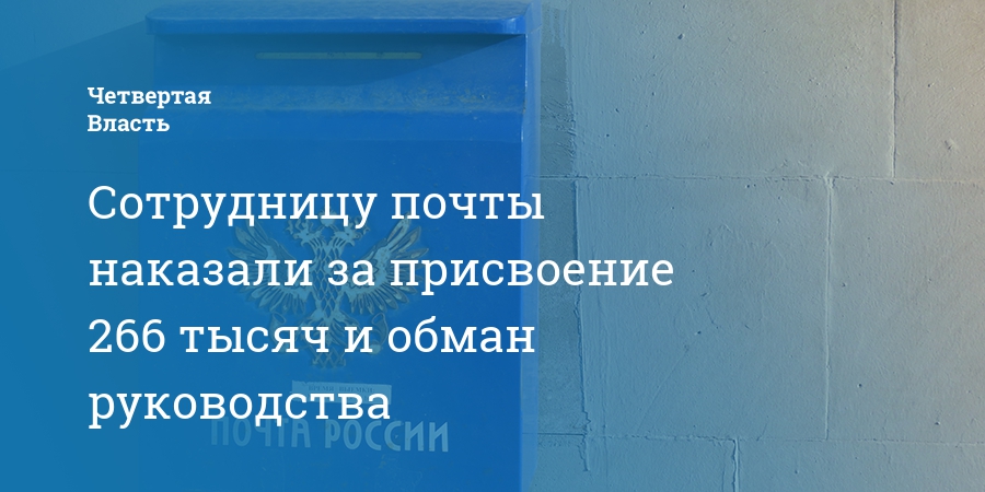 Сотрудницу почты наказали за присвоение 266 тысяч и обман руководства