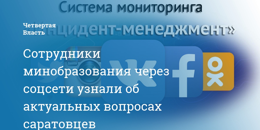 Министерство образования Саратовской области работает в системе «Инцидент Менеджмент». Это система мониторинга социальных сетей и один из главных инструментов работы Центра управления регионом.