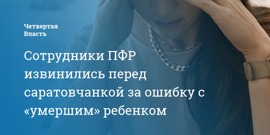 Сотрудники отделения Пенсионного фонда России по Саратовской области принесли извинения перед жительницей Саратова, которой отказали в детских пособиях по причине «смерти ребенка». Об этом «Четвертой Власти» сообщила уполномоченный по правам ребенка в регионе Татьяна Загородняя, к которой поступала жалоба.