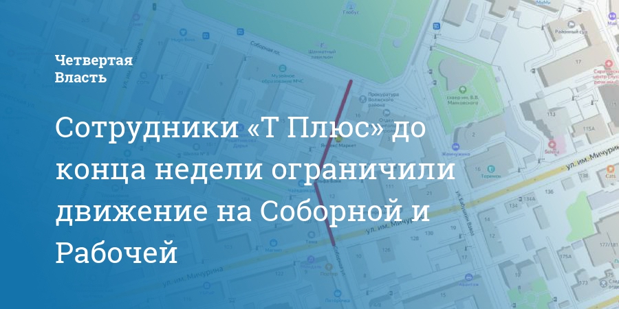 Так, движение ограничили на улице Соборной от улицы Мичурина до Соборной площади, а также рядом с домом №145/155 по улице Рабочей.
