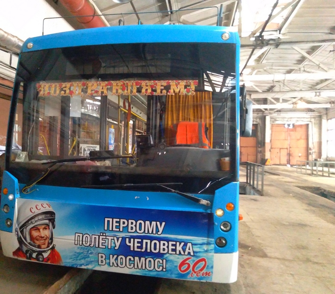 Опубликованы фотографии «космического» троллейбуса, который будет ездить по Энгельсу Саратовской области с 7 по 12 апреля. Электротранспорт украсили в честь наступления Дня космонавтики. Об этом сообщается на сайте администрации Энгельсского района.