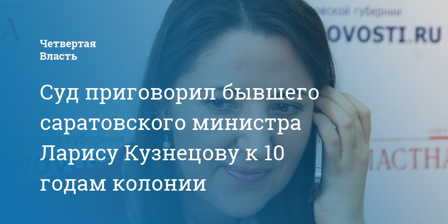 Сегодня в Октябрьском райсуде Саратова бывшего министра-председателя комитета по информатизации Саратовской области Ларису Кузнецову признали виновной во взятке и приговорили к 10 годам колонии строгого режима, а также штрафу более 35 млн рублей.