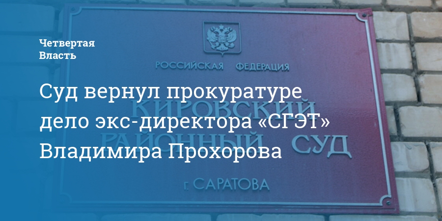 В Кировском районе Саратова суд вернул прокуратуре уголовное дело в отношении экс-директора МУПП «Саратовгорэлектротранс» Владимира Прохорова. Такая информация содержится в картотеке на сайте суда.
