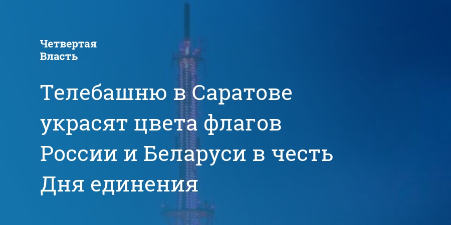 Телебашня в Саратове озарится цветами российского и белорусского флагов в честь Дня единения народов. Об этом сообщает пресс-служба филиала РТСР «Саратовский ОРТПЦ».