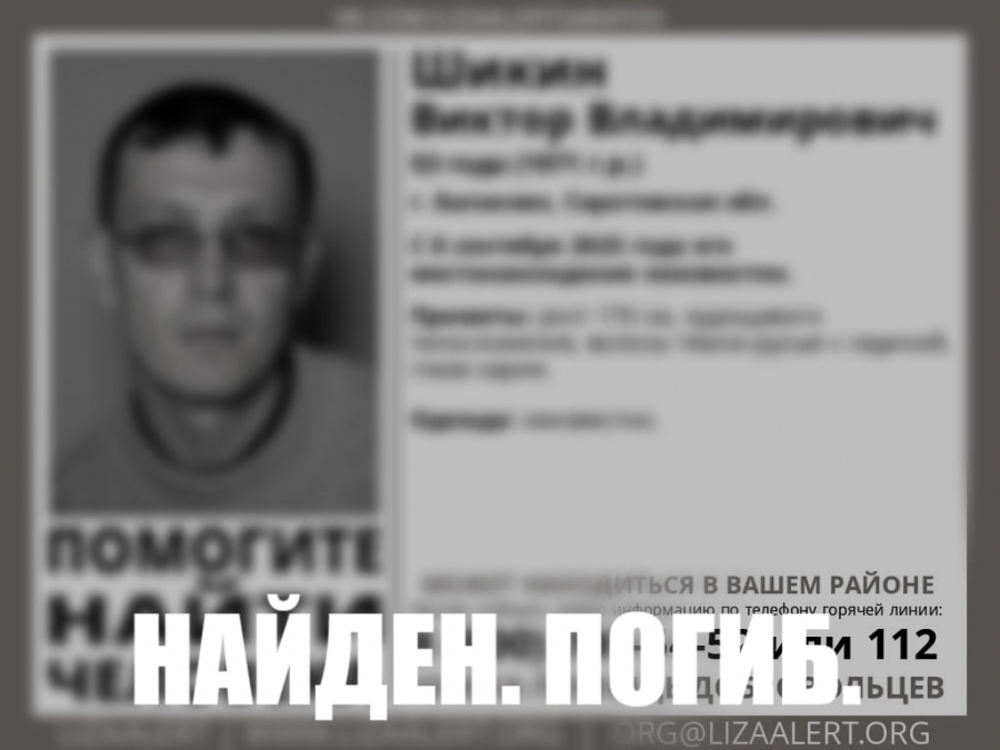 В Балакове Саратовской области нашли тело Виктора Шикина, которого больше недели искали как без вести пропавшего. Об этом сообщили волонтеры поискового отряда «Лиза Алерт».