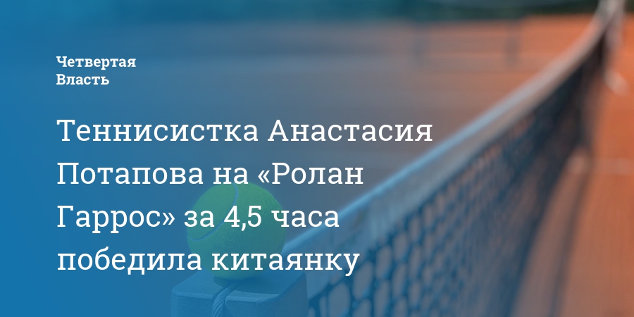 Теннисистка из Саратова Анастасия Потапова на турнире «Большого Шлема» в Париже (Франция) победила Ван Синьюй (Китай). Матч длился почти четыре с половиной часа.