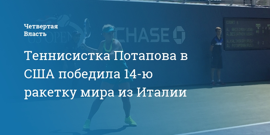 Матч с Жасмин Паолини (Италия) начался для Потаповой не лучшим образом. Нашла свою игру она при счете 3:5 и выиграла четыре гейма подряд - 7:5. Во второй партии итальянка не отдала саратовчанке ни гейма - 6:0.