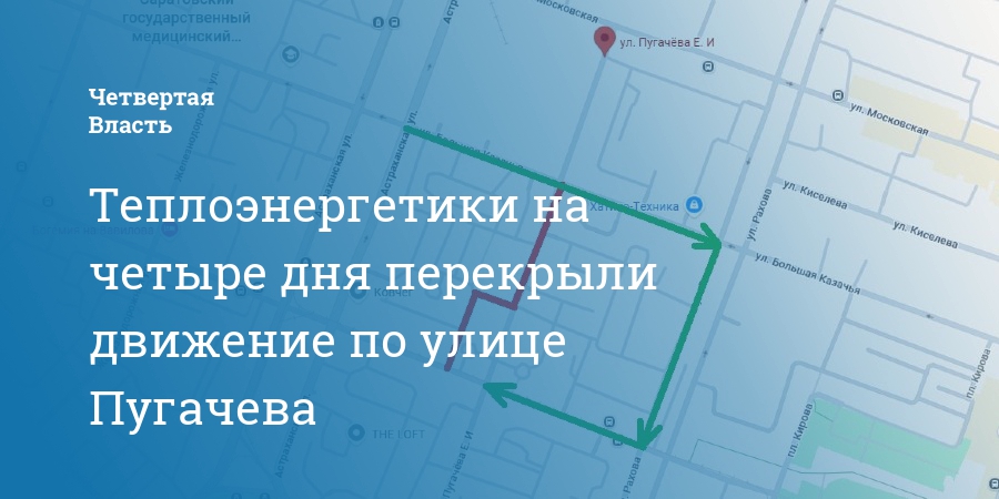 С сегодняшнего дня, 12 августа, во Фрунзенском районе Саратова теплоэнергетики перекрыли движение транспорта на участке улицы Пугачева. Как рассказали в компании «Т Плюс», это нужно для проведения ремонтных работ на трубопроводе.