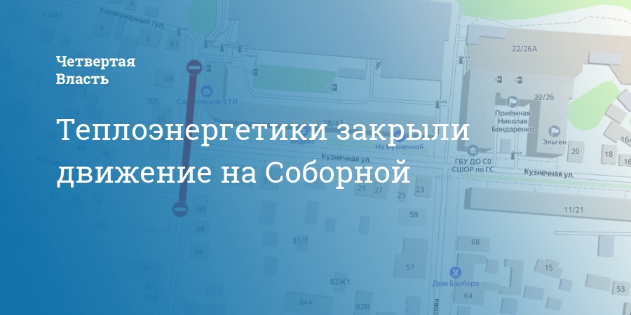 Движение закрыли по улице Соборной от дома №60 до дома №28/42 по улице Кузнечной. Проехать автомобилисты смогут по улице Некрасова.