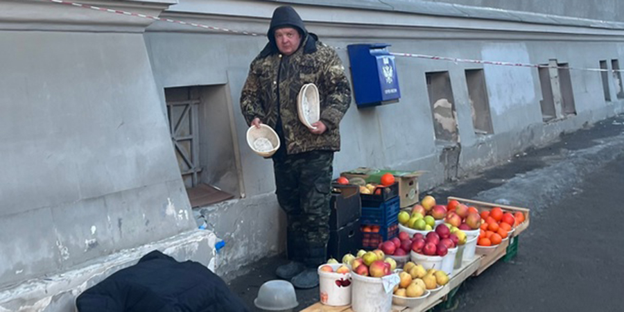 Мужчина торгует на перекрестке улиц Чапаева и Московской, недалеко от входа на почту. Несколько раз городские власти уже штрафовали его за продажу фруктов на улице, но он невозмутимо возвращается на старое место.